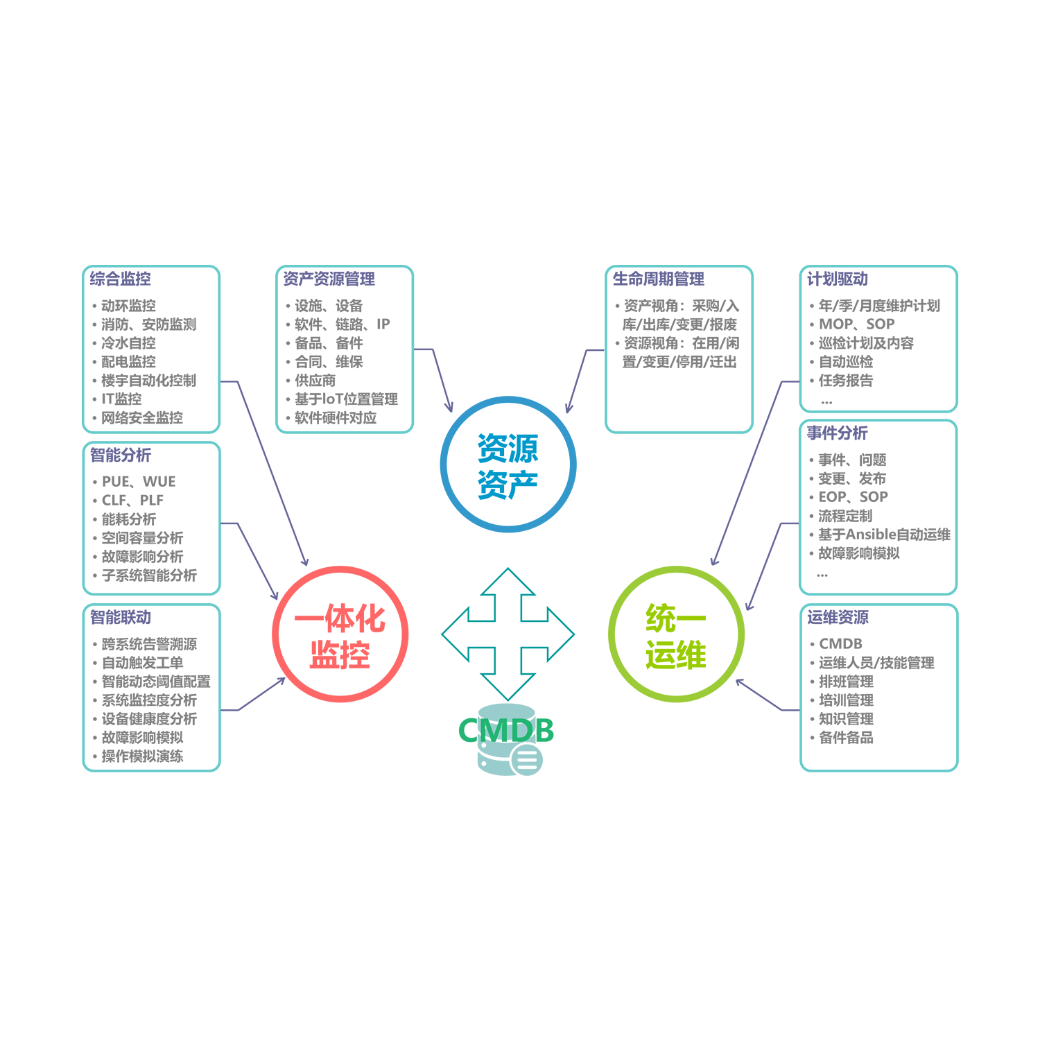 綜合監(jiān)控運(yùn)維管理系統(tǒng)以CMDB為核心,整合了數(shù)據(jù)中心的監(jiān)控管理、資源資產(chǎn)管理以及運(yùn)維管理等事務(wù),涵蓋了所有的運(yùn)維要素,通過(guò)數(shù)據(jù)掌控?cái)?shù)據(jù)中心所有的流程和工具,對(duì)數(shù)據(jù)中心的計(jì)劃管理,事件管理,問(wèn)題管理,變更管理,發(fā)布管理等功能提供完整的數(shù)據(jù)支撐,以達(dá)到協(xié)助用戶快速建立完整的、運(yùn)維業(yè)務(wù)為核心的綜合監(jiān)控運(yùn)維管理系統(tǒng),使用戶的運(yùn)維管理工作從日常的運(yùn)維監(jiān)控、統(tǒng)計(jì)分析、問(wèn)題發(fā)現(xiàn)與管理、解決朝著向流程化轉(zhuǎn)型。