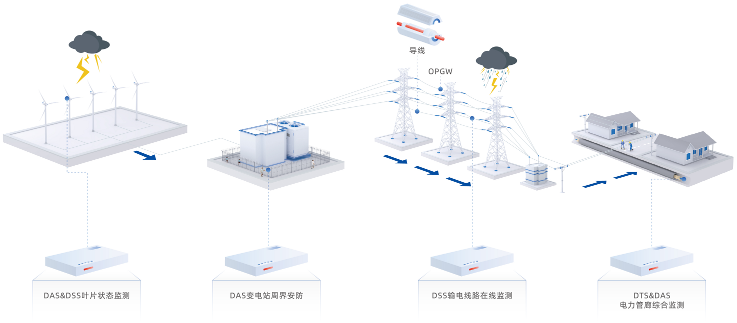 集傳感光纖、監(jiān)測主機、處置平臺于一體,提供多場景、高精度、長時效的傳感監(jiān)測系統(tǒng),為電力、安防、地勘、油氣等行業(yè)提供系統(tǒng)化傳感監(jiān)測方案。