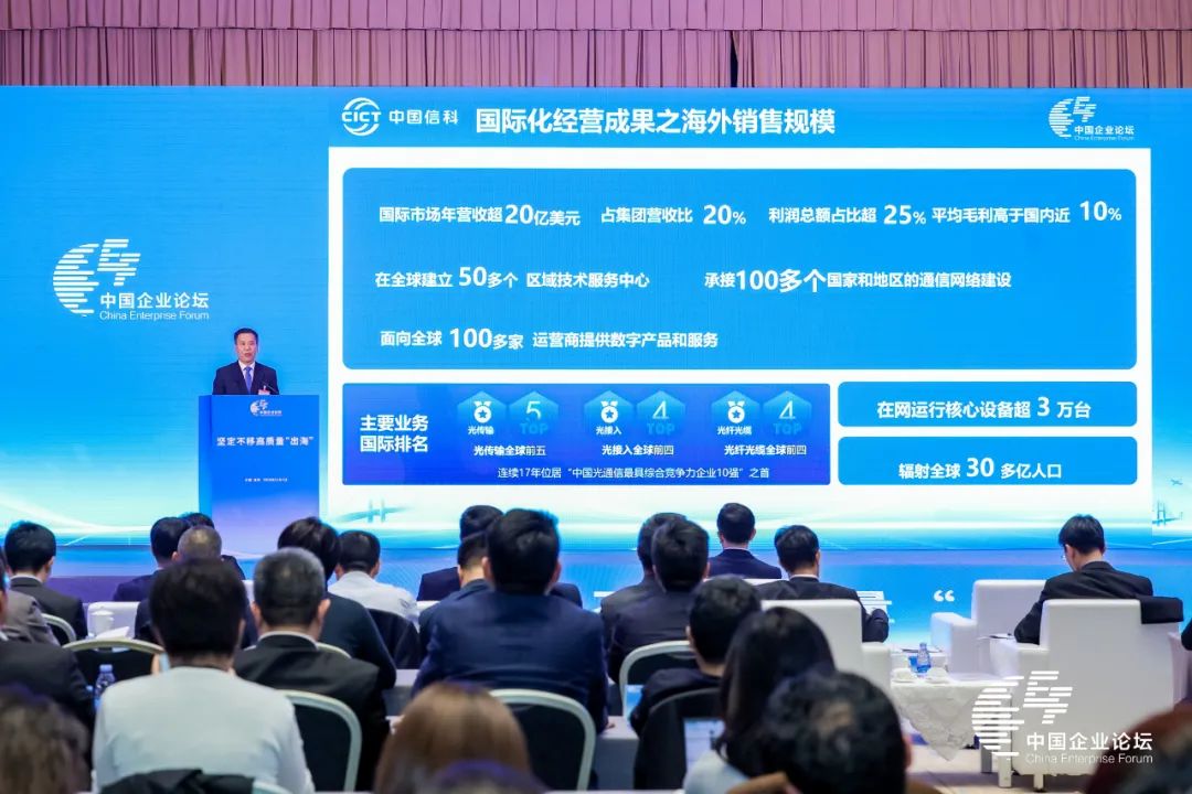 中國企業(yè)論壇由主題論壇、圓桌閉門會、平行論壇組成。在“堅(jiān)定不移高質(zhì)量‘出?!逼叫姓搲?,集團(tuán)黨委副書記、總經(jīng)理何書平以《加速拓新 強(qiáng)化合作 持續(xù)提升國際化經(jīng)營質(zhì)量》為題,全面介紹了中國信科擁抱國際化20余年來,在持續(xù)鍛造面向全球市場的技術(shù)創(chuàng)新能力、屬地化營銷服能力、海外本地化生產(chǎn)制造能力、全球資源配置能力上的積極探索,以及集團(tuán)從“出口”“出?!钡健叭蚧本薮筠D(zhuǎn)變中的經(jīng)營成效。