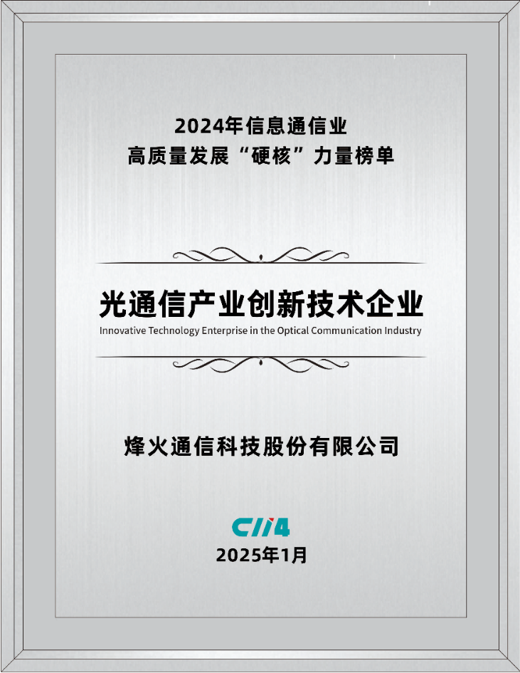 C114訊 1月15日消息 2025年1月15日,“2024年度信息通信業(yè)高質(zhì)量發(fā)展‘硬核’力量榜”正式發(fā)布。烽火通信獲評(píng)“光通信產(chǎn)業(yè)創(chuàng)新技術(shù)企業(yè)”,以表彰其在光通信領(lǐng)域的出色表現(xiàn)與卓越貢獻(xiàn),以及在技術(shù)層面上的持續(xù)創(chuàng)新。