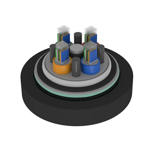 金屬加強(qiáng)構(gòu)件,松套層絞填充式、鋁-聚乙烯內(nèi)護(hù)套、皺紋鋼帶鎧裝、聚乙烯外護(hù)層的通信用室外光纖帶光纜