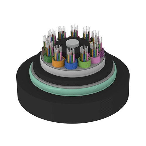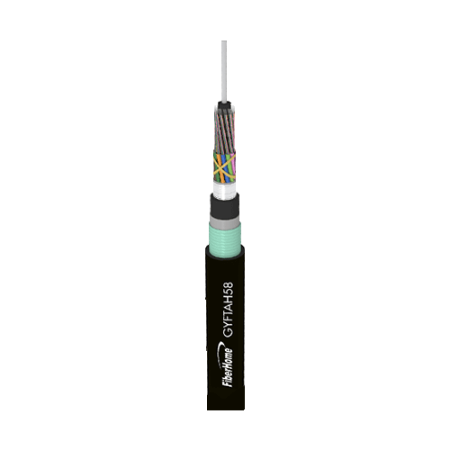 非金屬加強構(gòu)件、松套層絞填充式、鋁-低煙無鹵阻燃聚烯烴粘結(jié)護套、縱包皺紋鋼帶鎧裝、低煙無鹵阻燃聚烯烴套通信用室外光纜