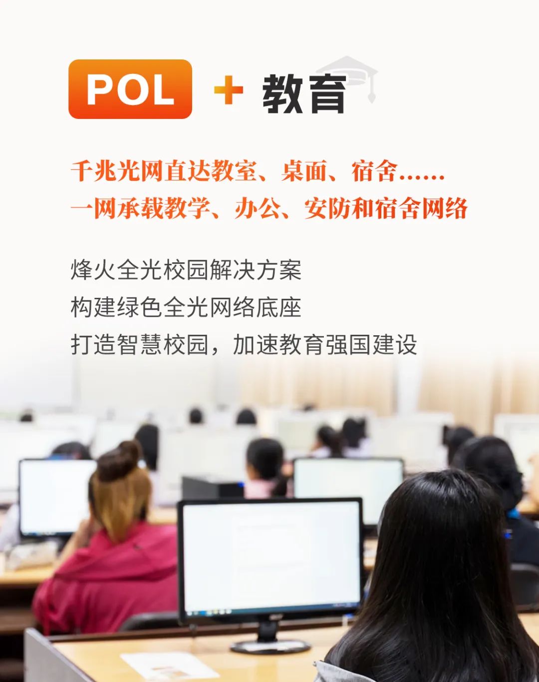 職業(yè)教育作為與經(jīng)濟社會發(fā)展聯(lián)系緊密、與就業(yè)民生關(guān)系直接的教育類型,對服務(wù)產(chǎn)業(yè)發(fā)展和培養(yǎng)產(chǎn)業(yè)轉(zhuǎn)型人才意義重大。烽火通信將持續(xù)發(fā)揮POL方案優(yōu)勢,幫助更多學校打造全光校園,推動職業(yè)教育數(shù)字化轉(zhuǎn)型和高質(zhì)量發(fā)展。