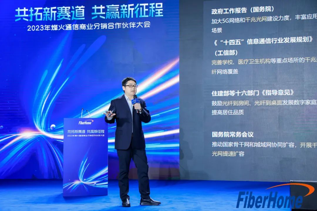 烽火通信副總裁范志文出席本次大會(huì)并發(fā)表致辭。范志文回顧了烽火通信不忘初心、砥礪前行的發(fā)展歷程。他指出,烽火通信持續(xù)完善產(chǎn)品貨架和面向分銷業(yè)務(wù)的運(yùn)營(yíng)服務(wù)體系,幫助合作伙伴在“營(yíng)銷財(cái)服”等方面全面提升。隨著中小型企業(yè)數(shù)字化轉(zhuǎn)型加快,烽火必須攜手廣大合作伙伴才能真正服務(wù)好廣大行業(yè)客戶。