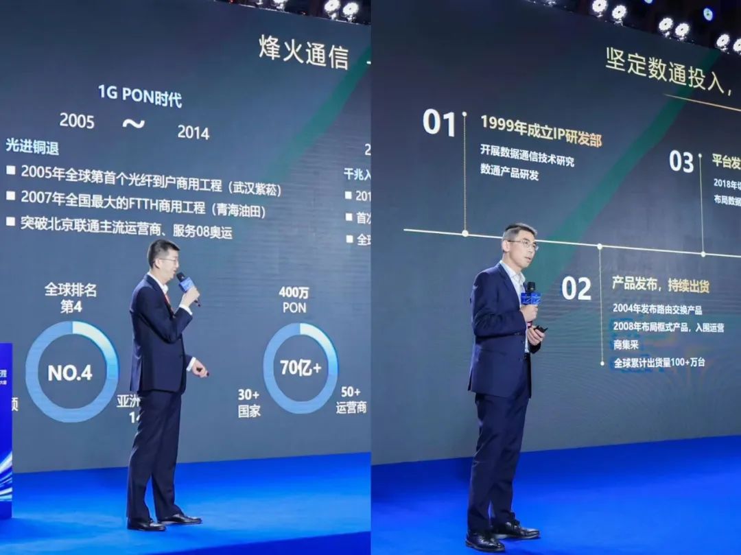 近年來,烽火通信發(fā)力分銷市場(chǎng),在產(chǎn)品端組建專業(yè)研發(fā)團(tuán)隊(duì),匠心打造適銷產(chǎn)品。大會(huì)上,烽火通信寬帶產(chǎn)品線總監(jiān)羅文毅代表烽火首次發(fā)布Easy FTTO政企全光方案,聚焦小微場(chǎng)景,為行業(yè)市場(chǎng)提供極致性價(jià)比的產(chǎn)品組合。烽火通信數(shù)通產(chǎn)品線總監(jiān)金家徳則為合作伙伴帶來數(shù)通新產(chǎn)品系列,產(chǎn)品家族覆蓋了園區(qū)網(wǎng)絡(luò)的各層需求。