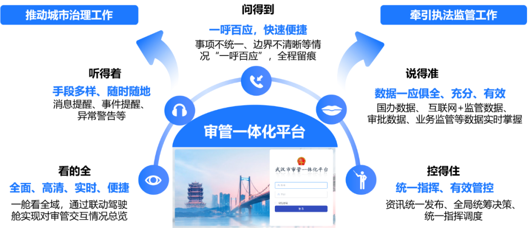 秉承“小切口、微應(yīng)用、首創(chuàng)性”的原則,烽火從簡(jiǎn)化流程、搭建平臺(tái)、系統(tǒng)互聯(lián)、微應(yīng)用開發(fā)、機(jī)制建立五大方面,輔助武漢市實(shí)現(xiàn)審批與監(jiān)管的無(wú)縫銜接。同時(shí),通過(guò)搭建審批與監(jiān)管一體化平臺(tái),成功打通10個(gè)市直部門的監(jiān)管執(zhí)法系統(tǒng),實(shí)現(xiàn)信息的實(shí)時(shí)共享,讓審批流程更加集中和簡(jiǎn)化,監(jiān)管更加精準(zhǔn)和高效。