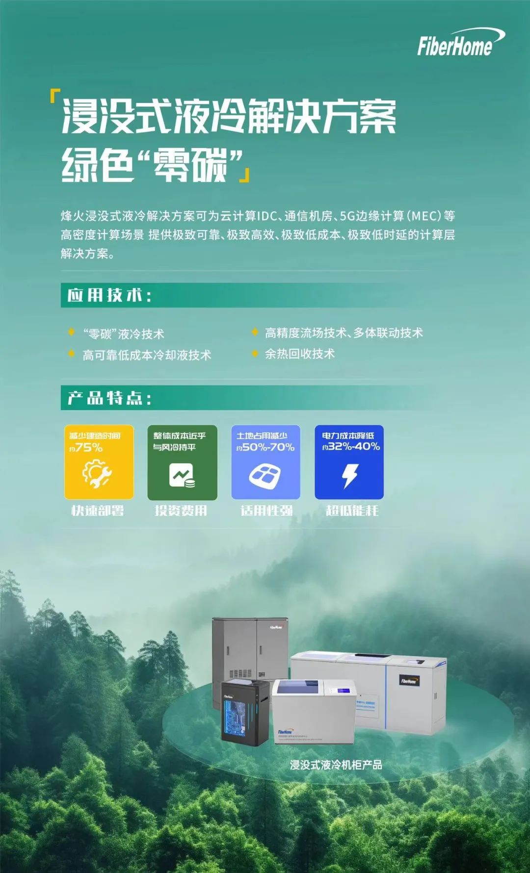 基于烽火通信的浸沒式液冷解決方案,客戶數(shù)據(jù)中心的PUE可降至1.1以下,用電成本可下降40%;此外服務(wù)器占用空間可節(jié)約50%~70%、建筑成本可節(jié)約30%~50%,且部署環(huán)境普適、交付方便快捷,讓客戶省電、省地、省心。