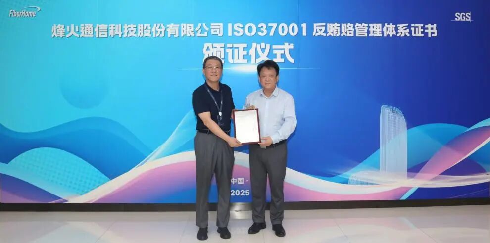 8月27日,國際公認(rèn)的測試、檢驗和認(rèn)證機(jī)構(gòu)SGS向烽火通信正式頒發(fā)ISO37001反賄賂管理體系認(rèn)證證書,這一榮譽(yù)標(biāo)志著烽火通信憑借前瞻性戰(zhàn)略眼光,在反賄賂合規(guī)建設(shè)上達(dá)到國際標(biāo)準(zhǔn),成為業(yè)內(nèi)為數(shù)不多獲此認(rèn)證的企業(yè)。