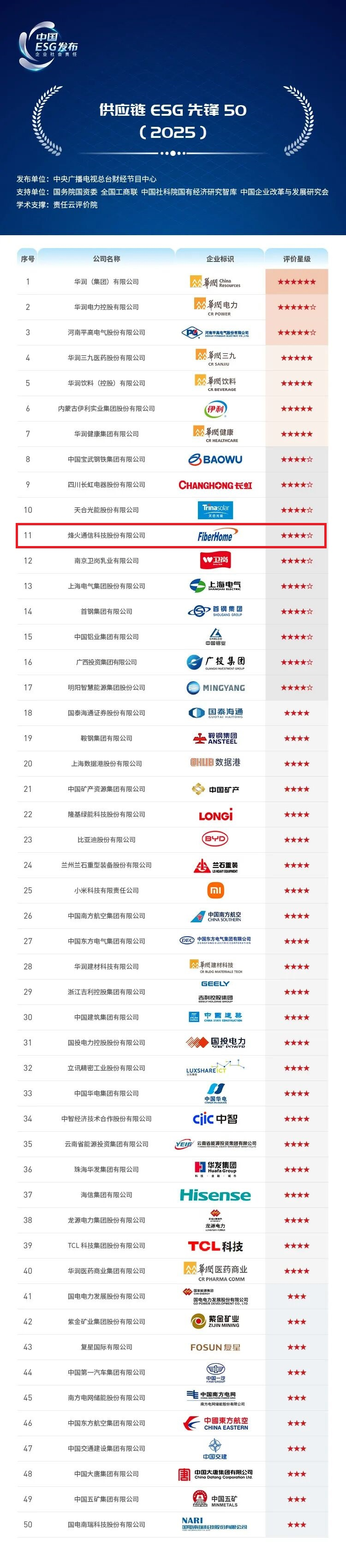 10月24日,在ESG中國(guó)·創(chuàng)新年會(huì)(2025)暨首屆ESG國(guó)際博覽會(huì)上,中央廣播電視總臺(tái)《供應(yīng)鏈ESG行動(dòng)報(bào)告(2025)》正式發(fā)布,烽火通信憑借在供應(yīng)鏈ESG領(lǐng)域的優(yōu)秀實(shí)踐成果榮登“供應(yīng)鏈ESG先鋒50(2025)”榜單。